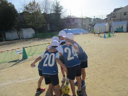 体育では、サッカーの学習をしています。自分たちで準備をし、すぐに練習に取り組みます。今日は4回目の学習。チームで協力して活動することができるようになりました。仲間が失敗した時も、責めるのではなく、アドバイスや励ましの言葉をかけられるようになりました。勝っても負けても笑顔いっぱいの3年生、とてもすてきです!