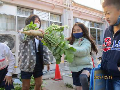 2年 学校で植えた大根を収穫したよ
