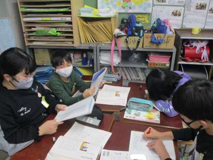 国語の時間に,熟語について学習しました。訓を手がかりにして,漢字の組み合わせや熟語の意味について考えました。耳で聞くとわかりにくい場合でも,漢字で書いてみるとわかるものもありました。