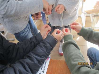 音楽で「ずいずいずっころばし」を学習しました。知らなかったという子も多く,初めての経験にドキドキわくわく。グループでやってみたら,最後に当たるか?とドキドキしたようで,とても盛り上がっていました。