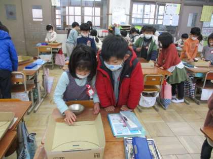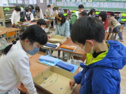 算数科「大きなかず」の学習で、おはじきゲームをしました。「10点がいくつ?」「1点が○点だから・・・」とペアで楽しく学習することができました。