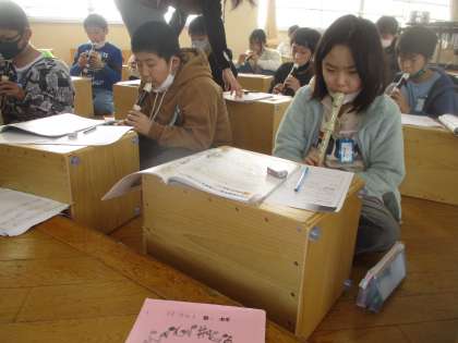リコーダーやピアノで旋律を確認しました。