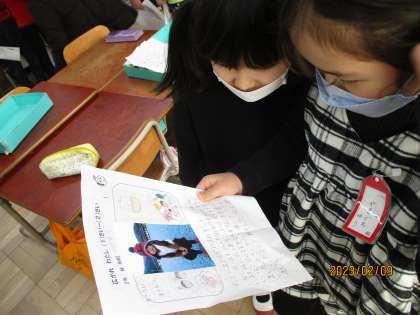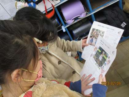 生活科の1〜2歳の交流をしました。「今と少し顔が違うね。」や「おもちゃではプリンセスが好きだったんだね。」など、友達の写真を見たり、話を聞いたりしてたくさん質問や感想を伝え合っていました。