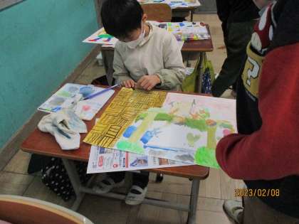 2年生で一番楽しかった思い出,ドキドキしたことを画用紙に自由に表現しています。