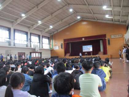 「自分も人もしあわせになる学校をめざして〜かしこくなる やさしくなる えがおになる〜」という学校目標を聞きました。家庭学習についての話も聞き、自分の学力を伸ばすために、しあわせになるためにがんばろう!という思いが6年生からあふれていました。