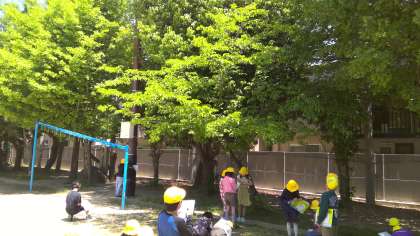 理科で春の生物の観察に出ました。サクラの木は新緑に。葉の虫食いのようすから,毛虫に注意という話をしていると…「あの赤いの何!?」と子どもたちが何かを発見。数個ではありますが サクランボ が実っていたのでした。一瞬「食べられるの?」と期待した子どもたち。残念ながら食べられません。食べられる樹種ではないことと,理科では「味わう」という調べ方は厳禁なのでした。