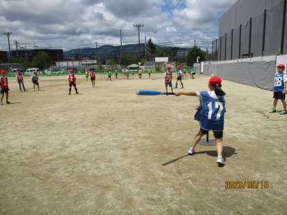 初めてハンドベースボールをしました。打ったら走ることや、3塁に行ったら1点が入ることなどを確認した後、試合をしました。今日のめあてはルールに慣れることだったので、最後の振り返りには、「ルールに慣れたので、次の試合ではボールを遠くに打つために強く打ちます。」と新しいめあてを立てている子もいました。