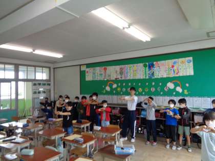 4年生は、桂川中学校のチャレンジ体験で3日間ほど川岡小学校に学習に来た中学校のお兄さんと過ごしました。授業のサポートをはじめ、休み時間では一緒に思いっきり楽しんだり、給食を食べながら思いっきり笑い合ったりしてくれました。中学生のお兄さんとの絆が深まりました。またいずれ出会える日が楽しみですね。