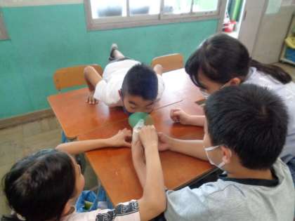 4年生の理科では、電気のはたらきの学習が始まっています。電池を使ったり、モーターを使ったりしながらプロペラを回していました。「向きを反対にするにはどうすれば良いのだろう。」といった疑問を声に出すなど大変意欲的に学習をしていました。