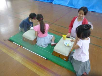 4年生の総合的な学習の時間で,目の不自由な方の気持ちや生活を考えるために,アイマスク体験をしました。