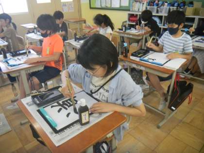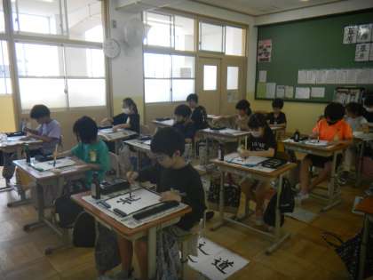 書写の学習では、中と外のバランスに気をつけて「道」を書きました。鉛筆で書くときも、「上手に書けない!!」と苦手意識を感じている子たちが多い「しんにょう」。力強い線になるよう、最後にぐっと筆をおさえてからそおっと筆を抜いていくことを意識しました。「しんにょう」だけの部分練習にも取り組んだので、「今まででいちばん上手に書けた!」と喜んでいる子たちがたくさんいました。