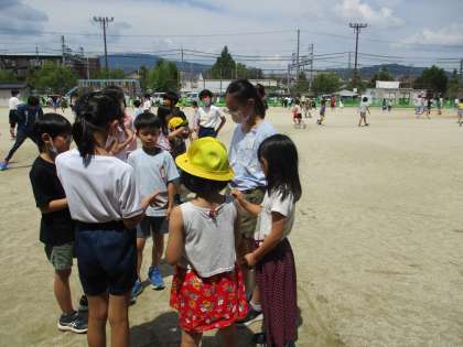 月曜日にたてわり遊びがありました。1・2組は、たてわりグループで初めての外遊び、3組は教室での遊びでした。6年生が考えてきてくれた遊びをみんなで楽しむことができました。5年生として、低学年の子たちに優しく接する姿がたくさん見られ、頼もしかったです。