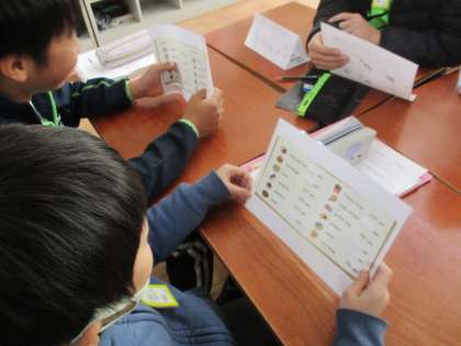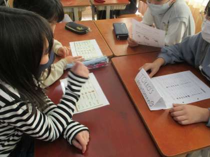 外国語科の「What would you liKe?」の学習では、丁寧な言葉で注文したり、値段を聴いたりする活動を行いました。グループでレストランの店員になり、店の名前を考えたり値段を決めたりした後、店員とお客さんに分かれてやり取りをしました。学んだ表現を使って楽しくやり取りをすることができました。