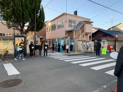 月曜日から始まった桂川中学校の生徒会のみなさんによるあいさつ運動も、今日が最終日でした。最終日の今日は、小学校の計画委員も門の外に立って一緒にあいさつ運動に取り組みました。川岡小学校の「先輩」と「後輩」が一列に並んであいさつ運動に取り組む姿は、とてもほほえましかったです。