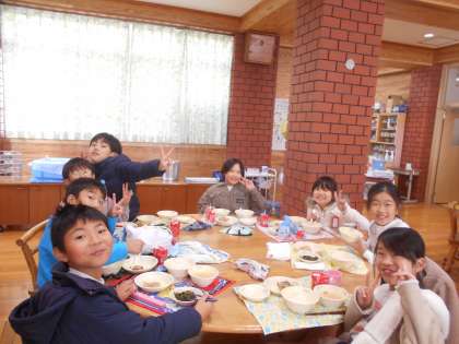 とても楽しそうに、おいしい給食をみんなで味わって食べていました。