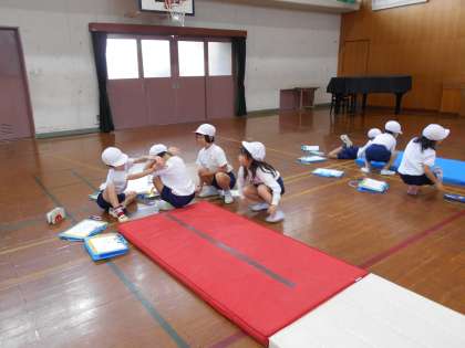 体育で「マットあそび」をしています。友達とアドバイスをし合ったり、良いところを見つけ合ったりしながら楽しんで活動しています。「マットあそび」は残り半分ですが、どんどん挑戦しながら頑張ってほしいと思います。