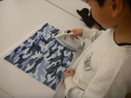 家庭「ミシンにトライ!」の学習で作ったランチョンマットにアイロンをかけて、初めてミシンで作った作品が完成しました。手縫いよりもきれいに早く縫えるミシン。初めは怖がっている子どもたちもたくさんいましたが、だんだん慣れてくると、まっすぐきれいに縫えるようになりました。自分で作ったランチョンマットで給食やお弁当を食べる日が楽しみです。