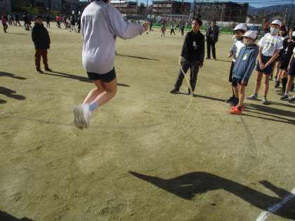 木曜日に運動委員会企画の大繩検定が行われました。5年生は大繩で八の字をし、クラスごとに跳んだ回数の記録を測定しました。この日までに各クラスで練習した成果を発揮できたと思います。どのクラスも励まし合いながら楽しく記録に挑戦することができました。
