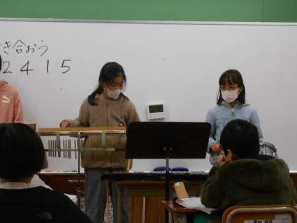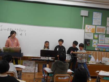 それぞれのグループがどんなリズムにしようか、どこでどんな音を出そうか考えて工夫しており、とても楽しい音楽になっていました。