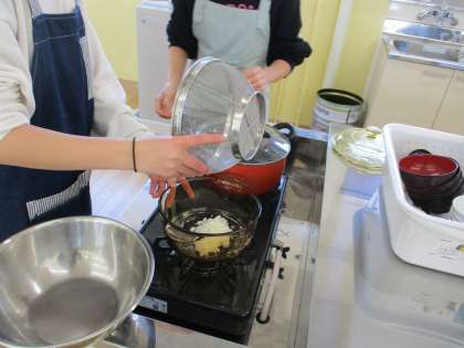 家庭科では、2度目の調理実習を行いました。今回は、ご飯を炊き、出汁からお味噌汁を作りました。子どもたちは、グループで役割を分担しながら、手際よく進めることができ、おいしいご飯とお味噌汁を作ることができました。
