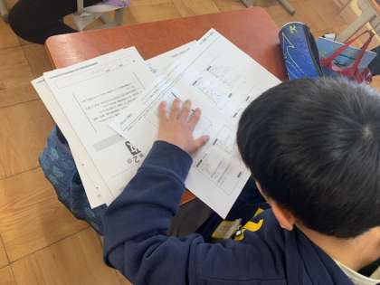 冬休み明けに実施したジョイントプログラムを返却しました。点数だけではなく、どの問題でどのように間違えたのかを、解答用紙と模範解答を行ったり来たりしながら確認しました。自分の得意なところと苦手なところを明らかにして、6年生の学習へとつなげていってほしいと思います。