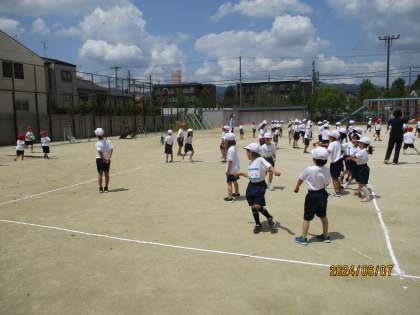 1年【うれしい!】みんなでドッジボールをしたよ。