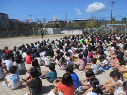 1年【かしこくなる】避難の仕方を学んだよ。