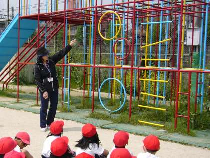 体育の「ゆうぐであそぼう」の時間に、総合遊具の使い方について学習しました。両手・両足のうち必ず3点は固定して、1点だけを動かしての移動を守りながら、はじめて最上部までのぼりました。これからも安全に気をつけて、楽しく遊具を使って遊べるといいですね。