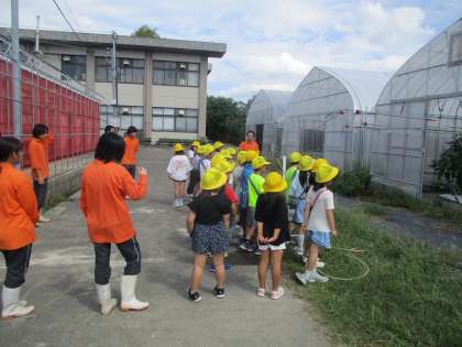 2年生は生活科の学習で夏野菜を育てました。今度は、秋〜冬野菜にチャレンジします。そこで、植物に詳しい桂高校の人たちの力を借りることになりました。