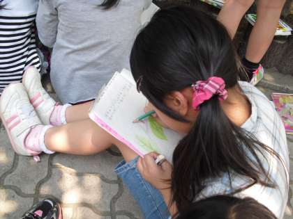 理科の学習で、桜の木を観察しました。花は散ってしまったのですが、葉っぱや幹、木全体の様子を色や大きさなどに気をつけながら観察し,4月頃の様子と比べました。