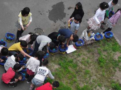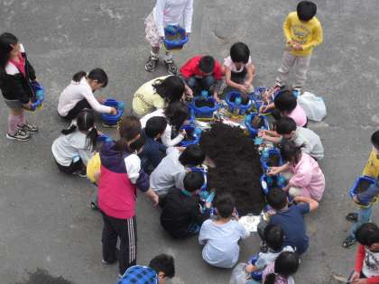 理科の時間にホウセンカの種をまきました。一人一人の植木鉢に新しい土を入れ、自分の種を大事そうに植えました。ちゃんと育つかな?
