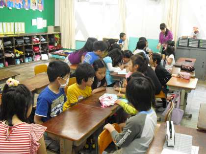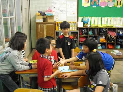 今日は「たてわりあそび」の顔合わせがありました。6年生を中心に自己紹介をすませたあと、1年間どんなことをして遊ぶのか、みんなで相談しました。1年間みんなでなかよく楽しい時間が過ごせるといいですね。