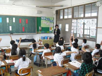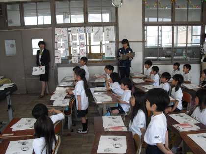 今日の1年2組の国語は、教頭先生が授業をしてくれました。鳥と実の色や様子を想像しながら、リズムや繰り返しを意識して、みんなで音読を楽しみました。