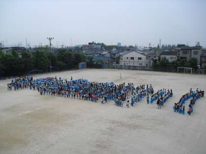 撮影してくれた飛行機に「さよなら!」をしました。どんな人文字ができたかな?