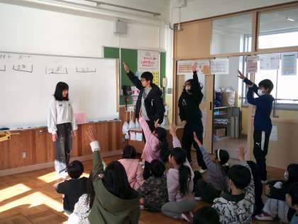 中間休みにたてわり遊びをしました。教室や運動場で6年生が中心となって考えた遊びをみんなで楽しみました。教室で行われたジェスチャーゲームでは、各学年が思い思いのジェスチャーを出したり、それに答えたりしている表情に笑顔が見られました。