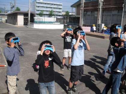 太陽が月に隠れて細いリング状になる金環日食が今朝ありました。日本での金環日食は1987年9月の沖縄以来で、関西では282年ぶりだそうです。みんな遮光板片手に世紀の天体ショーに見入っていました。今回のように広い地域で起きる次回の金環日食は300年後だそうです。6年生は312歳か・・・。