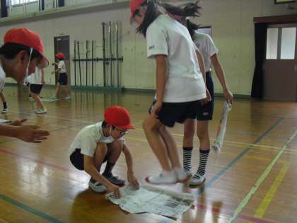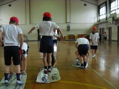 体育館で体ほぐしの運動をしました。今日は新聞紙を使って、いろいろな運動を楽しみました。友達と呼吸を合わせながら、みんなでなかよく活動できるなんて、素敵な体育の授業でした。