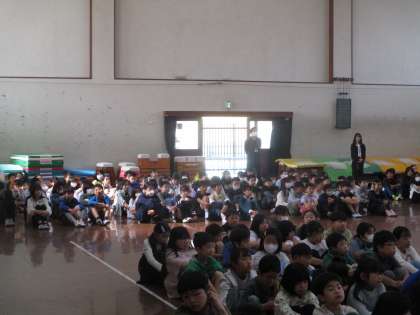 今年度初めての朝会。低学年の見本になる「みんながあつまるときのたいど」を意識して、5年生の子どもたちは朝会に参加しました。背筋をぴんとのばして話を聞く姿勢が立派でした。