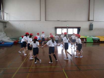 体育の学習で、フォークダンスの「マイムマイム」を踊りました。3年生の時にも踊っていたので、子どもたちはすぐに踊りを思い出していました。