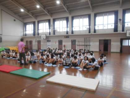 「立ちはばとび」「上体起こし」「反復横跳び」「長座体前屈」の4種目を行いました。