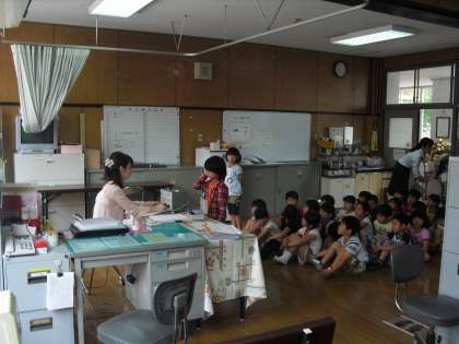 今日は保健室で聴力検査がありました。養護の松本先生の話を聞いた後、いよいよ検査です。小さな音をききとる検査なので、検査を受けている人は真剣そのもの。検査の邪魔にならないように、待っている人も物音一つたてずに静かに検査を進めることができました。