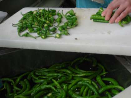 今日の給食は,ごはん・牛乳・わかさぎのこはく揚げ・伏見とうがらしのおかか煮・すまし汁でした。京野菜のひとつ,伏見とうがらしを使った新しい献立で,子どもたちが食べやすいように給食室でひとつひとつ中の種を取って小さく切り,ちくわとこんにゃく花かつおとともにかおりよく仕上がっていました。すまし汁には,季節のみょうがが入りこちらも味,食感,香りともに楽しむことができました。