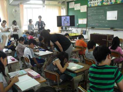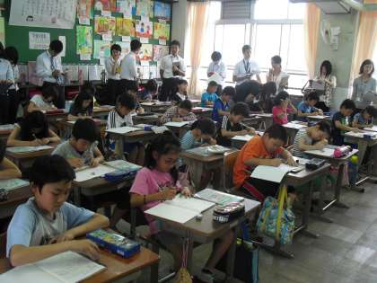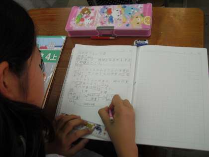 算数の時間に「何倍でしょう」の学習をしました。今日の授業は、京都市の採用1年目の先生も参観に来られていたので、たくさんの先生に囲まれながらの授業でした。みんな自分の考えをノートにしっかりまとめ、学習を進めることができました。