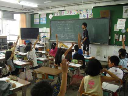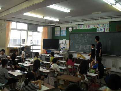 今日の算数は「一億をこえる数のつくり方」を考えました。2億5000万を2億と5000万に分け,加法的にとらえる見方や1000万を単位として,その幾つ分と乗法的にとらえる見方を基に、みんなで意見を出し合い、学習を進めていきました。