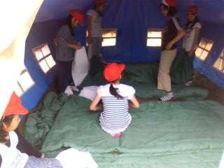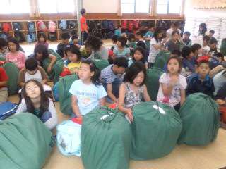 オリエンテーションでは,シーツの敷き方・畳み方を習います。できるようになったら,テントやバンガローに行って,自分の寝床の準備をしておきます。