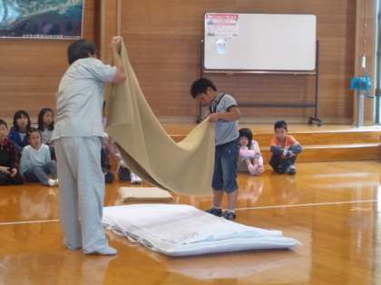 入所式では、代表の人がしっかりとあいさつをしてくれました。シーツの敷き方もバッチリです!