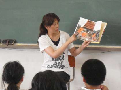 5年3組の教室では「へっこき よめどん」の読み聞かせが行われました。