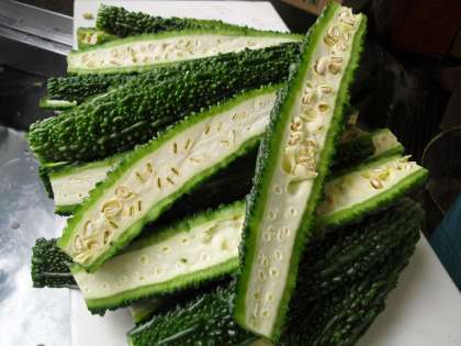 今日の給食は,麦ごはん・牛乳・豚肉とゴーヤのしょうがいため・とら豆の甘煮・かきたま汁でした。濃い緑色のみずみずしいゴーヤが蒸し暑さで疲れた体においしく感じられました。