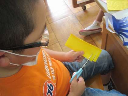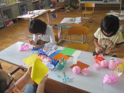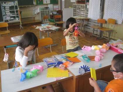 七夕の時に笹に飾るかざりをつくりました。ハサミをていねいに使いながら、いろいろなかざりをつくりました。かわいい飾りがたくさんできたので、あとは願いごとをしっかり考えてきたらできあがりです。今年はどんな願いごとをしようかな?