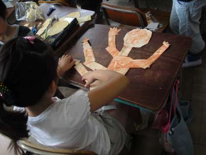 図工の時間に図工展にむけての作品作りをしました。自分の体をのびのびとした動きが出せるように、紙を手でちぎり、関節の動きに気をつけながらつくっていきました。体の色も授業参観の時に学習した絵の具ののせ方、混ぜ方をいかして仕上げています。どんな作品ができあがるのか楽しみにしておいてください。